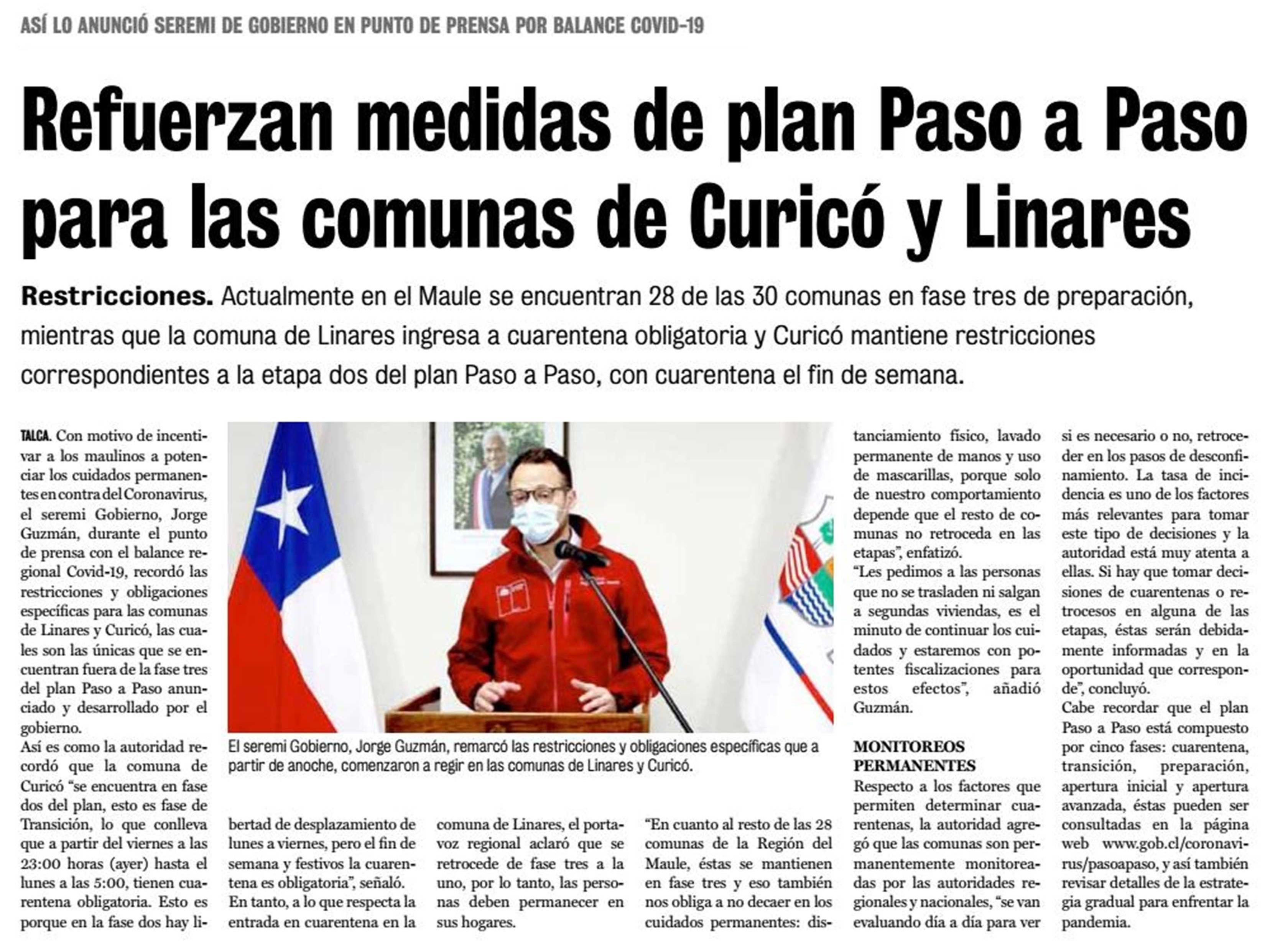 / Plan Paso A Paso Region Del Maule - Maule Siga La Pista - En específico, linares retrocederá a cuarentena a partir de este jueves 25 de febrero a las 5 de la mañana.